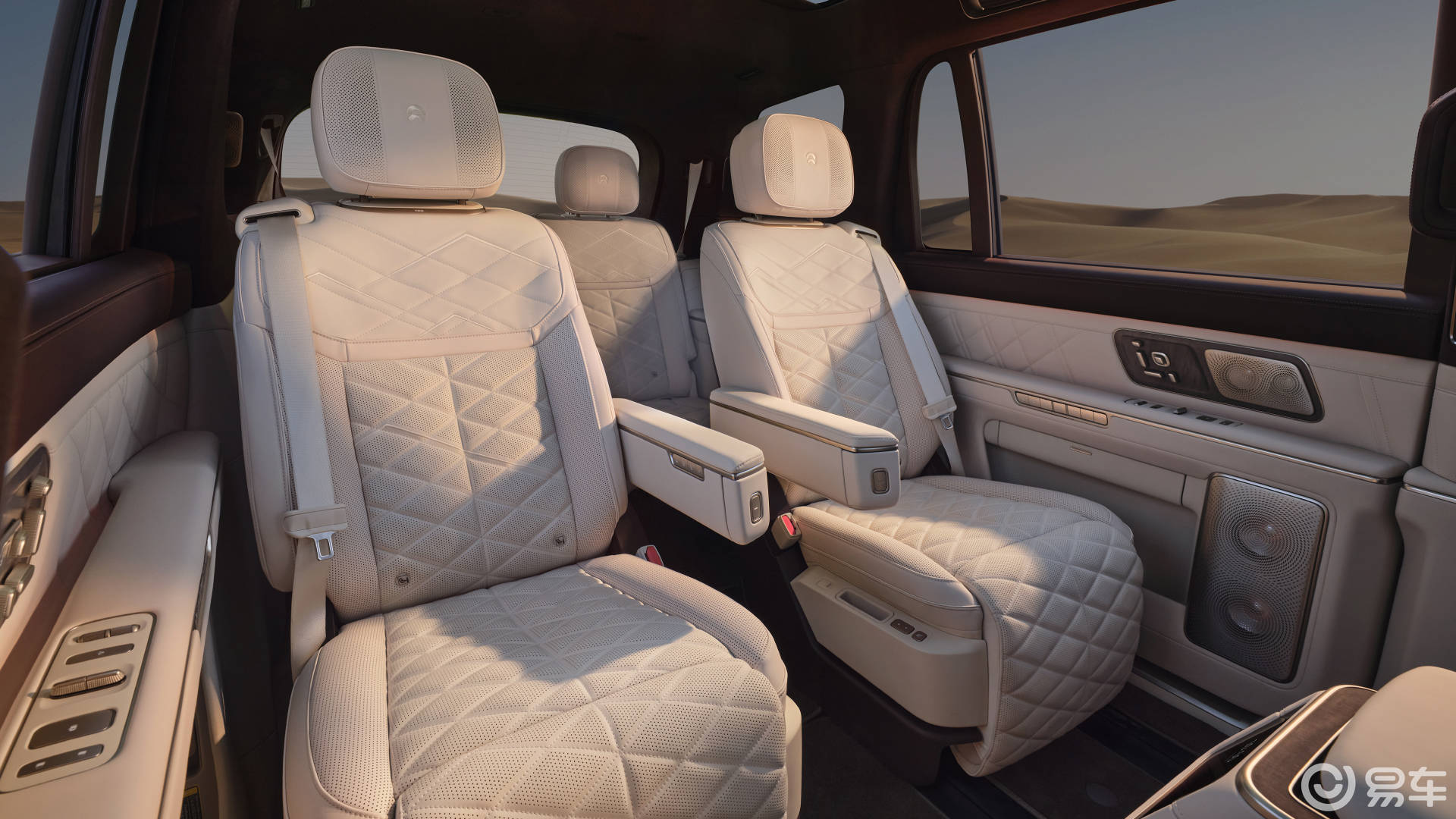 产品力不是第一好奇点,原因是ET9和ES8基本为ES9描绘了一个技术想象图,从技术发布会来看,基本是在ET9已推出技术上小幅升级,包括音响从8.2.4.8到9.2.4.8,加入高音钻石振膜、K9真水晶大灯、22点按摩17层结构座椅、20点足底按摩等。
