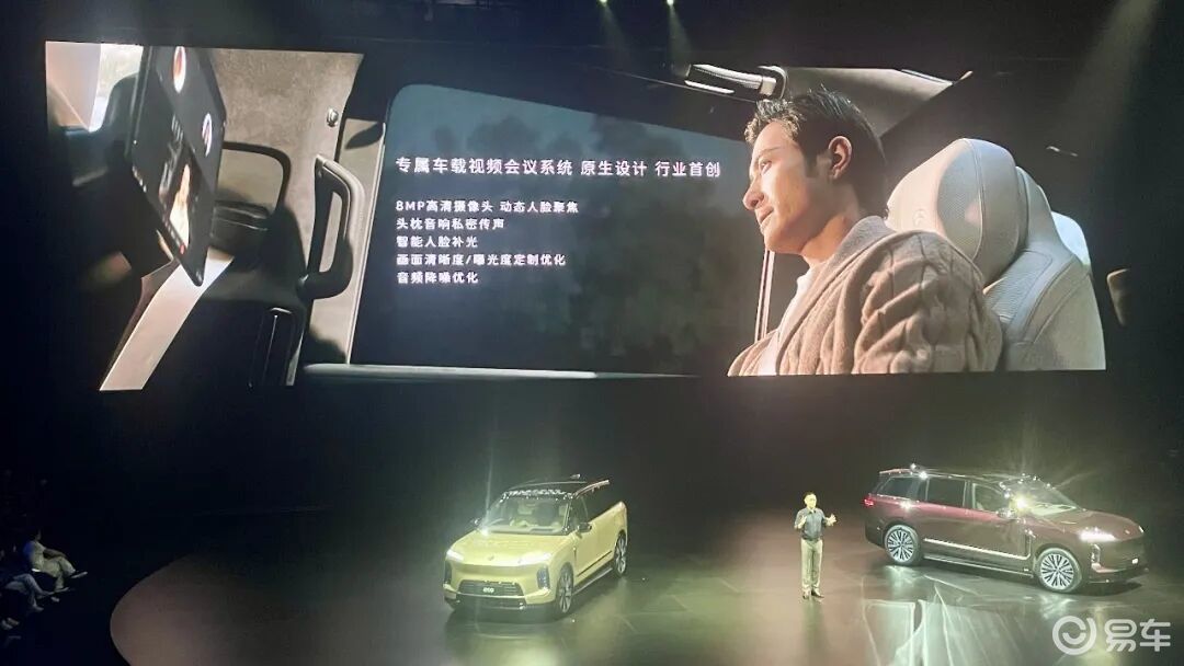事实上,ES9为第二排乘客配备的左右两块16英寸NIO Link专属行政屏还真就提供了行业首创的“专属车载视频会议系统”,其内置的8MP高清摄像头可实现动态人脸聚焦等相应功能。