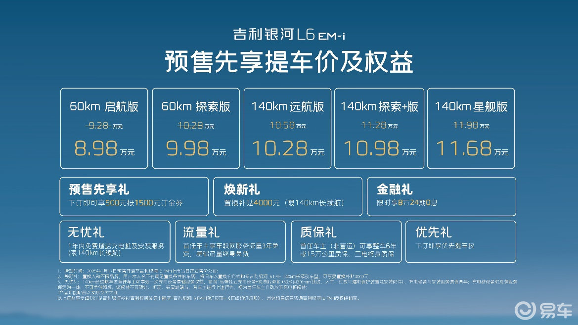 吉利银河L6 EM-i预售先享提车价8.98万元起