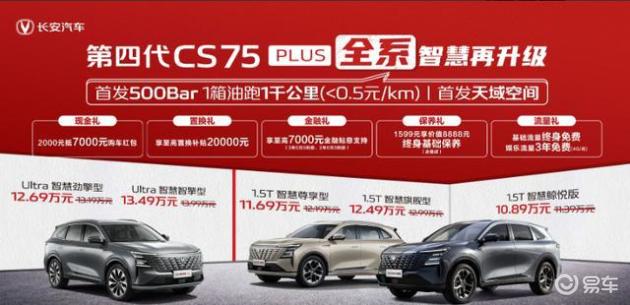 首先,咱们得说说这车的购车政策。第四代CS75 PLUS最近推出了智慧版,首发500Bar高压直喷技术,还有那个听起来很高级的“天域空间”功能。限时购车红包2000元抵7000元,下订还有5重礼,至高15000元的置换补贴。这一套组合拳下来,总价值近40000元的优惠,真是让人忍不住想掏钱包。尤其是对于那些想换车的老铁们,这置换补贴简直不要太香。再加上金融贴息、终身基础保养、免费流量这些福利,感觉长安这次是真的下了血本。价格方面,第四代CS75 PLUS的限时优惠后售价区间是10.89万到13.49万元。这个价位,放在紧凑型SUV市场里,竞争力相当强。尤其是对比比亚迪宋PLUS,CS75 PLUS的性价比优势更加明显。比亚迪宋PLUS虽然也不错,但价格上确实没有CS75 PLUS这么亲民。而且,CS75 PLUS的配置也不输比亚迪宋,甚至在某些方面还更胜一筹。