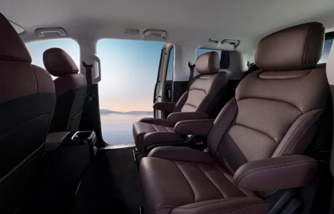 内饰方面,新车提供胡桃棕与暖沙棕双色内饰主题可选,配备同级最大的12.8英寸中控屏,空调出风口造型延续了大灯组内部的双层元素,座椅采用“2+2+3”7座布局。新车内部长度达同级最长的3331mm,横向达到同级最宽的1500mm。新车采用同级唯一的电动侧滑门,门槛高度较低,方便了乘客上下车。