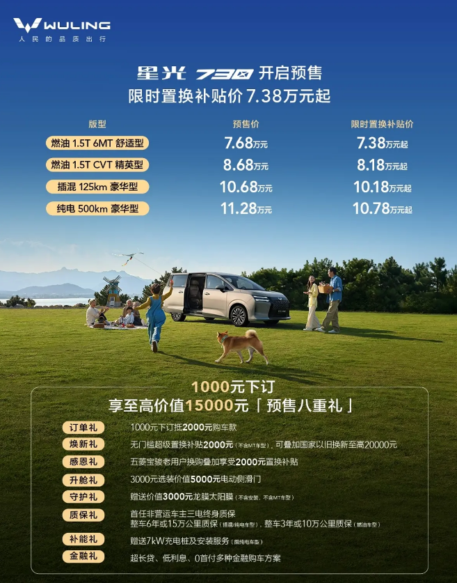 - 五菱星光730预售 燃油版车型限时置换补贴价7.38万起