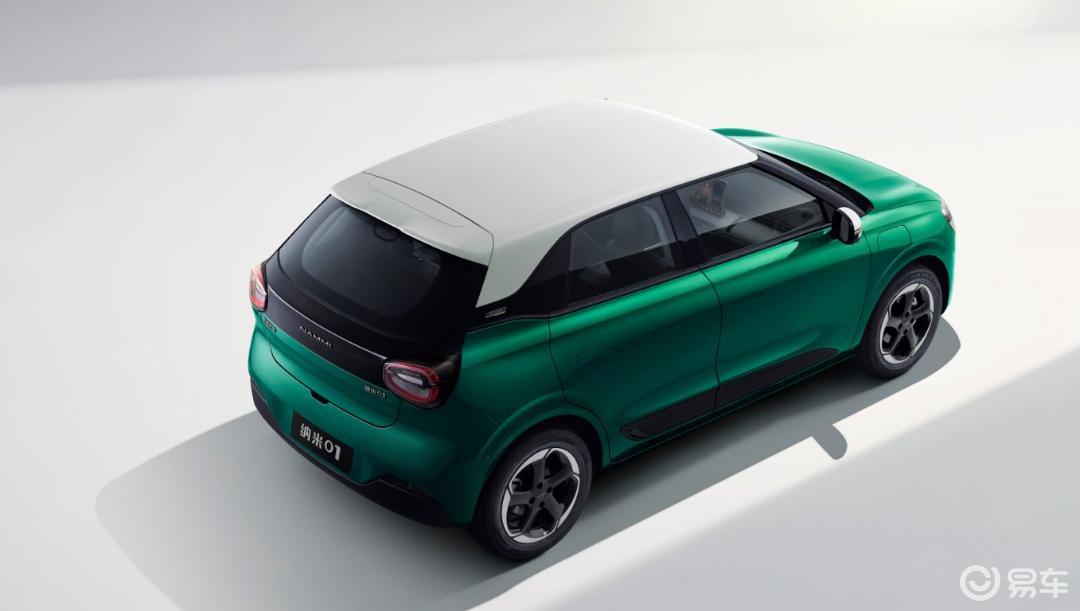 车身尺寸方面,纳米01长宽高分别为4020/1810/1570mm,轴距为2663mm。车身颜色提供无忧白和一定银两种单色车漆,和千金粉/无忧白、幻想紫/无忧白、属你红/无忧白和精灵绿/无忧白四种双色车漆选择。