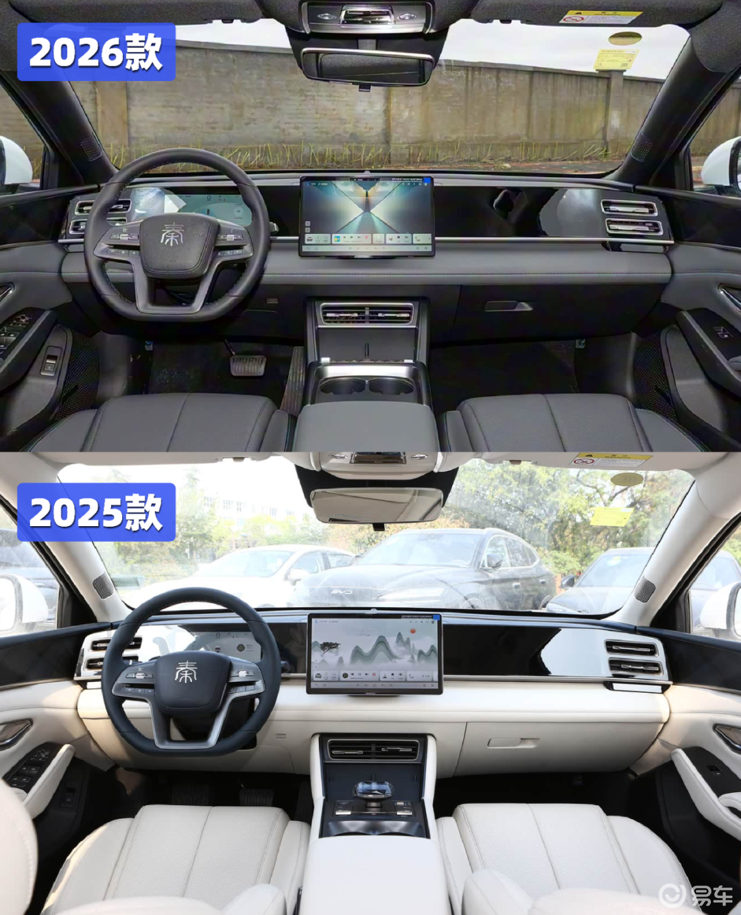 在车内,2026款宋L DM-i也例行升级了怀挡布局,并且还增加了冷暖冰箱以及座椅按摩等配置。
