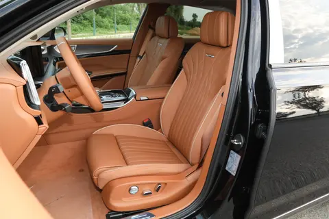 顶配的 3.0T 旗领版(53.98 万)就比较小众了,比旗畅版贵 8 万,主要升级是 4 座布局和双色车身。后排独立航空座椅带一键休憩功能,还能选装折叠小桌板和娱乐影音舱,完全是老板专属座驾的配置。但 5 座变 4 座牺牲了实用性,双色车身虽然气场强,可 6800 元的选装价其实比顶配自带更划算,只推荐给有顶级接待需求的企业或富豪用户。
