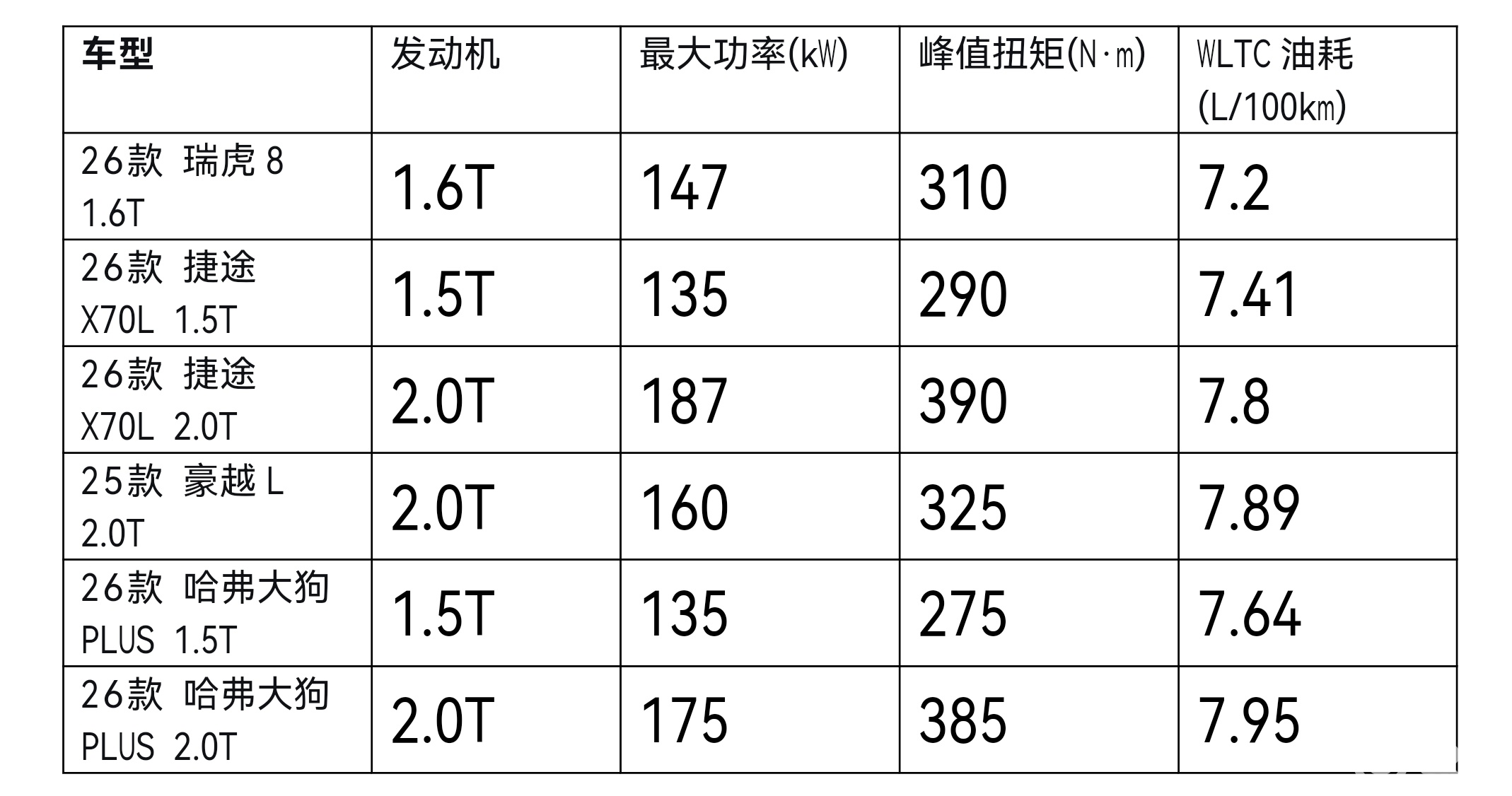 在10–15万元级中型SUV市场中,瑞虎8还面临来自内部与外部的双重竞争压力。同属奇瑞集团的捷途X70L在价格相近的情况下提供了2.0T动力与七座布局;外部的吉利豪越L凭借空间与品牌认知度占据市场,哈弗大狗PLUS则以鲜明的越野风格吸引特定消费群体。相比之下,瑞虎8在品牌标签与车型个性方面并不突出。