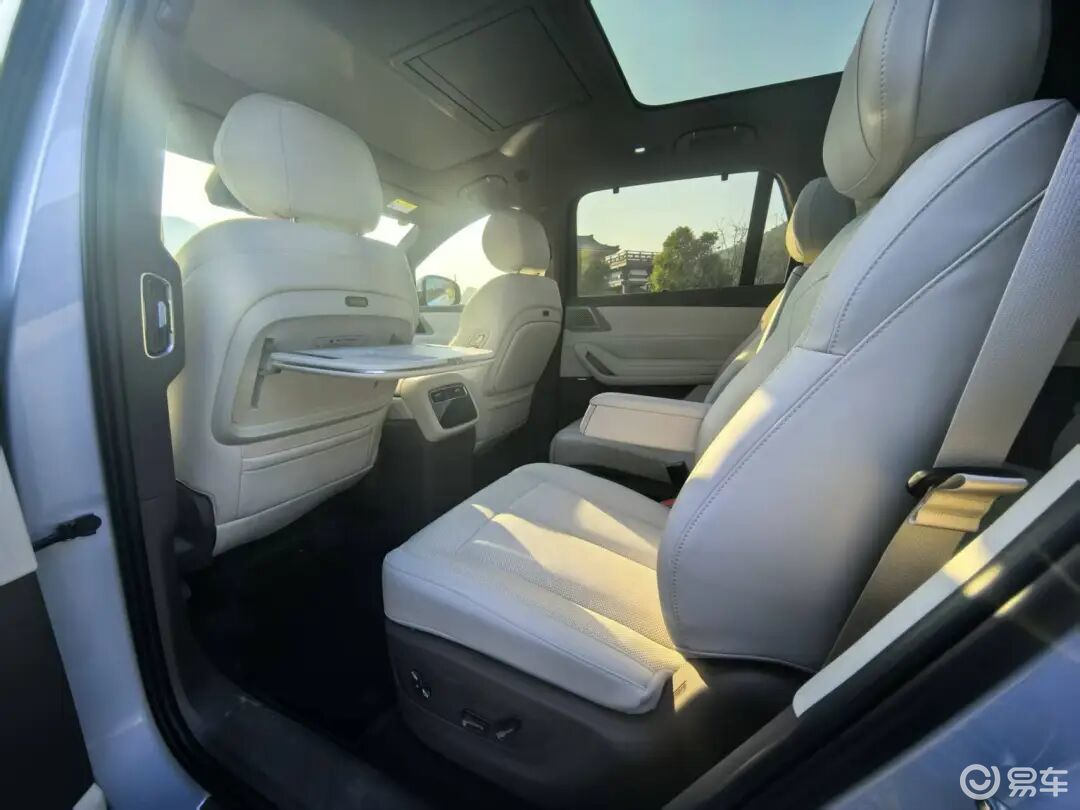二排的独立航空座椅支持加热、通风和按摩功能,右侧座椅还配备了电动女王腿托,将腿托展开,半躺下来,就像在飞机的商务舱一样惬意。6座版车型的中央过道宽达277mm,方便进出,完全没有局促感。第三排是支持前后10cm滑动和121°角度调节,标配的加热功能也很实用,就算在寒冷天气出行,后排乘客也能感受到温暖。