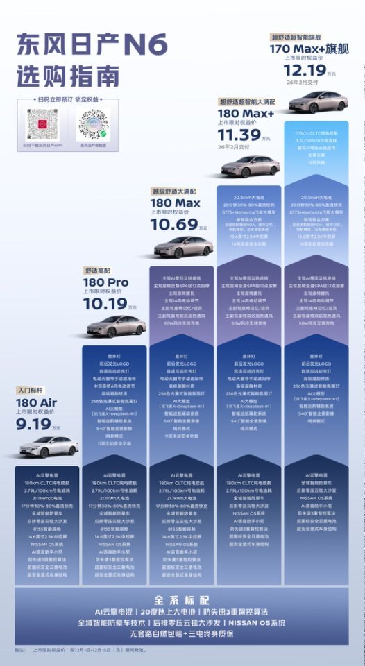 东风日产汽车销售有限公司总经理刘新宇在发布会上强调,品牌正依托“Glocal”模式,深度融合全球制造标准与中国本土新能源研发优势,目标是“用中国资源、中国速度、中国技术,打造最懂中国家庭的爆款好车”。N6的上市,标志着东风日产在智电转型道路上再落关键一子。它与“纯电新势力”N7、“新势力燃油车”天籁·鸿蒙座舱共同构成了覆盖插混、纯电、燃油的“最家”产品序列,满足多元家庭需求,其共同的品牌基因是“智能不减,舒适拉满”。