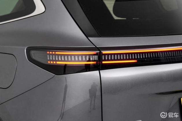 侧面线条流畅,后部肩线隆起较高,车窗饰条和车顶行李架都做了黑化处理,呈现出很强的运动感,配备常规门把手和19英寸密集辐条轮毂,高配车型可选马牌轮胎和20英寸轮毂,尾部设计简约,圆润动感,配备贯穿式“星翼灯带”,集成472颗LED光源,总长度3.5米,营造出星光环绕的视觉效果,在夜间点亮后拥有较高的辨识度与豪华感。