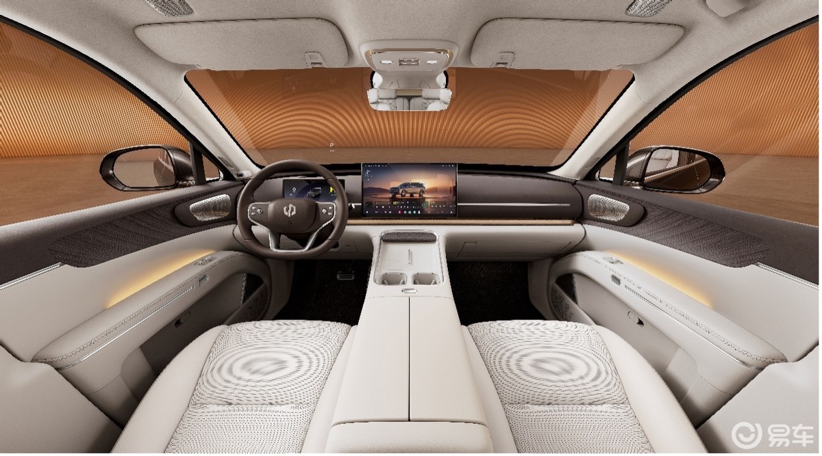 座舱内部,D19致力于打造“移动的精装大平层”。“悦享新境”主题内饰采用大面积软质包覆,座椅选用半苯胺头层真皮,并配备12层奢享结构。前两排座椅集成加热、通风及10点式气动按摩功能,二排120°真零重力座椅提供悬浮般的休憩体验。此外,车规级森野氧舱、2304W功率的23扬声器音响系统、智能香氛及全车氛围灯,共同营造出沉浸式的“五感疗愈空间”。