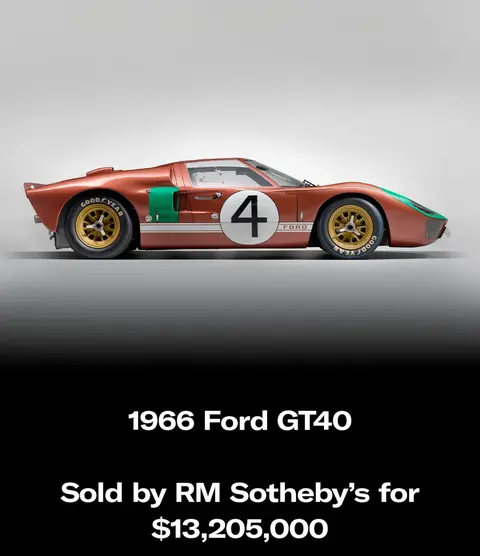 作为美系赛车的巅峰,福特 GT40 在勒芒赛场上击败法拉利的故事至今仍为人津津乐道。这辆1966年的原版赛车以1320万美元的价格成交,展现了其在赛车文化中不可替代的标志性地位。