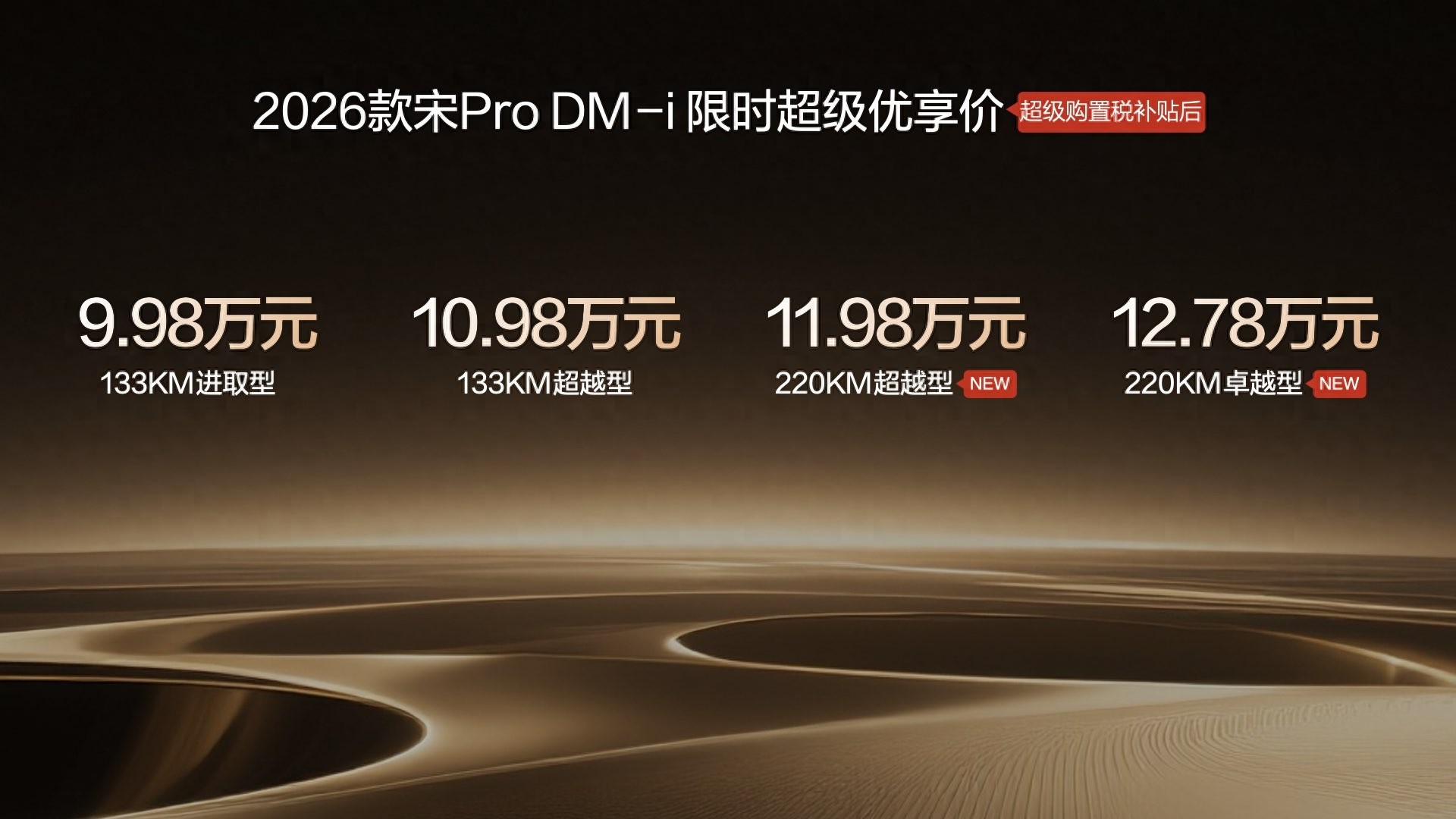 - 11.98万元起,宋Pro DM-i 220km长续航