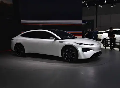 量产车型在保留流畅、动感整体轮廓的同时,出于实用性考量,并未采用概念车的对开门设计,而是回归传统样式。整车线条极为流线,突出了低风阻的工程导向。细节上,车头配备了激光雷达,并采用了半隐藏式门把手。