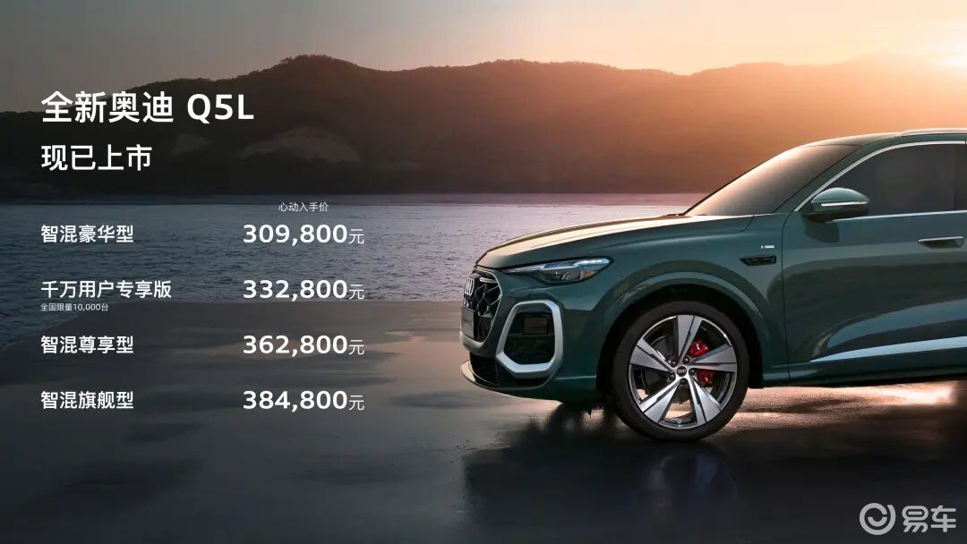 作为第三代奥迪Q5车型,一汽奥迪在将其国产加长定名为Q5L的同时,也为它带来了很多本地化的进化和提升。首先大家最关心的售价方面,全新Q5L共推出4款车型,售价区间30.98-38.48万元,比预售价有了小幅下调。