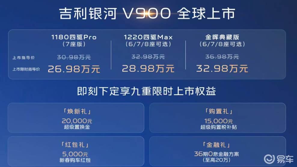 - 31.98万元-38.98万元,吉利银河V900开启预售