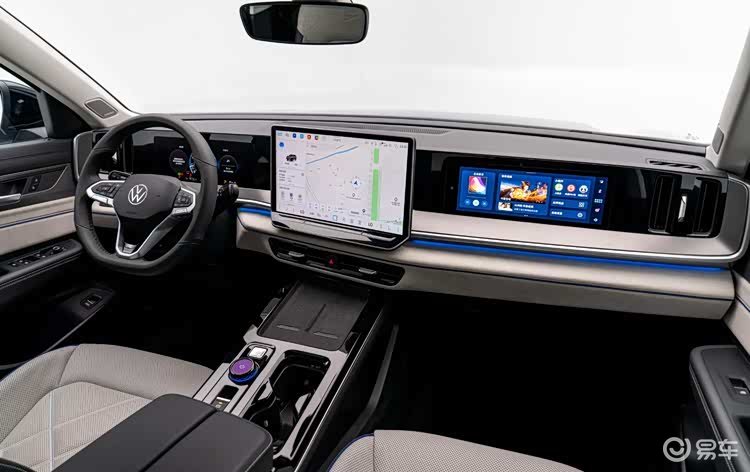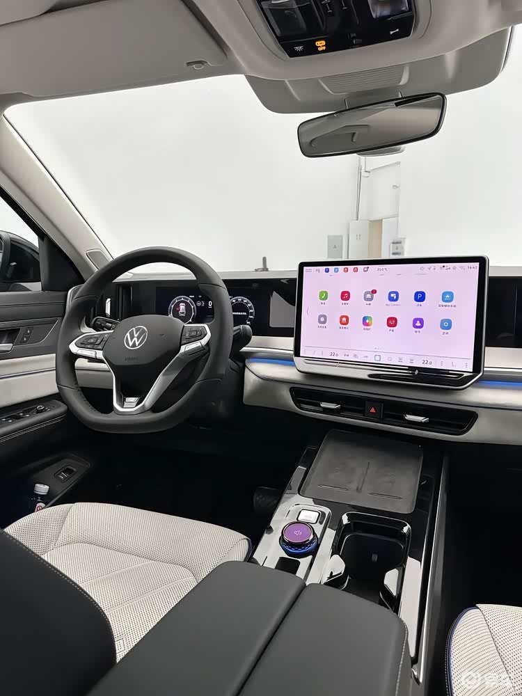 进入车内,新款揽巡采用了大众家族最新的内饰布局。环抱式座舱中最引人注目的是15英寸悬浮式中控屏,其后方还配备全液晶仪表盘和副驾驶娱乐屏,形成三联屏设计。配合抬头显示系统,车内呈现出较强的科技氛围。预计新车将搭载最新的智能车联系统,在人机交互与功能拓展方面有所提升。