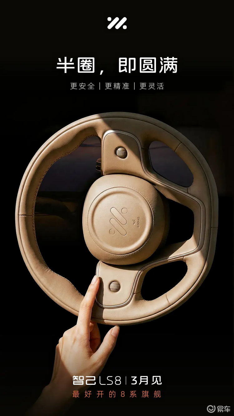 本次智己LS8预热的核心技术是线控转向,官方海报中“半圈,即圆满”的标语,指的正是这项配置。