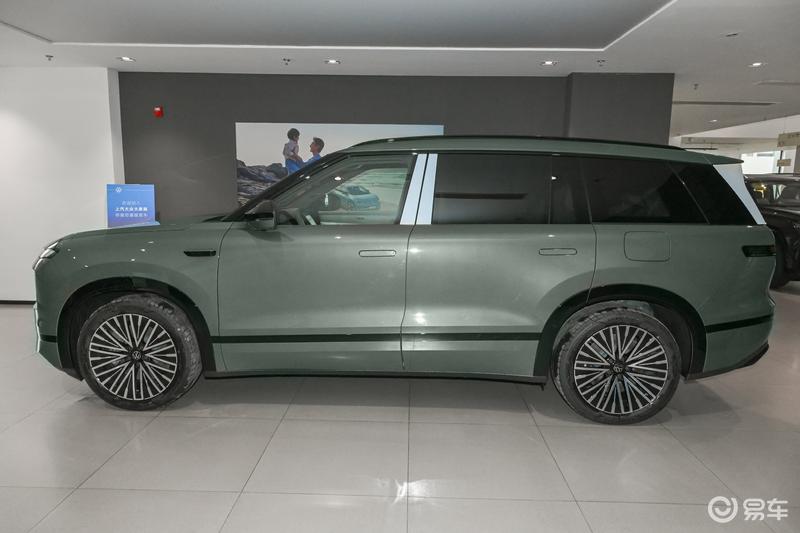 车身侧面,可以看到新车车顶是悬浮设计,后视镜和行李架都是黑色,轮拱很宽,轮圈有点内凹的设计,加上深色轮拱饰条,突出力量感。侧面腰线很高,也很简洁,裙带也用了灯带设计,整体风格偏稳重一点。