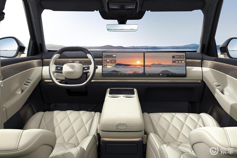 ID. ERA 9X搭载15.6英寸超高清中控主副驾双联屏,21.4英寸后排可折叠吸顶大屏搭配视角补偿膜,拓展视野。新车采用了六座布局,并配备女王座椅和第二排行政级座椅。